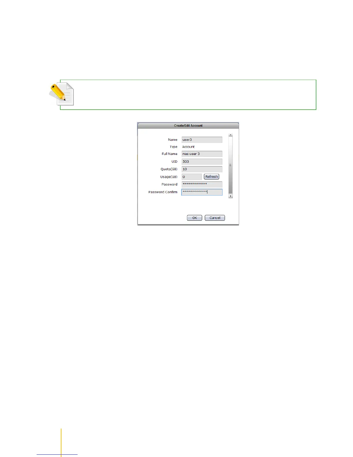 NOTE: Only the Full Name, Quota, Password, and Password Confirm can be changed. Account Name, UID,and