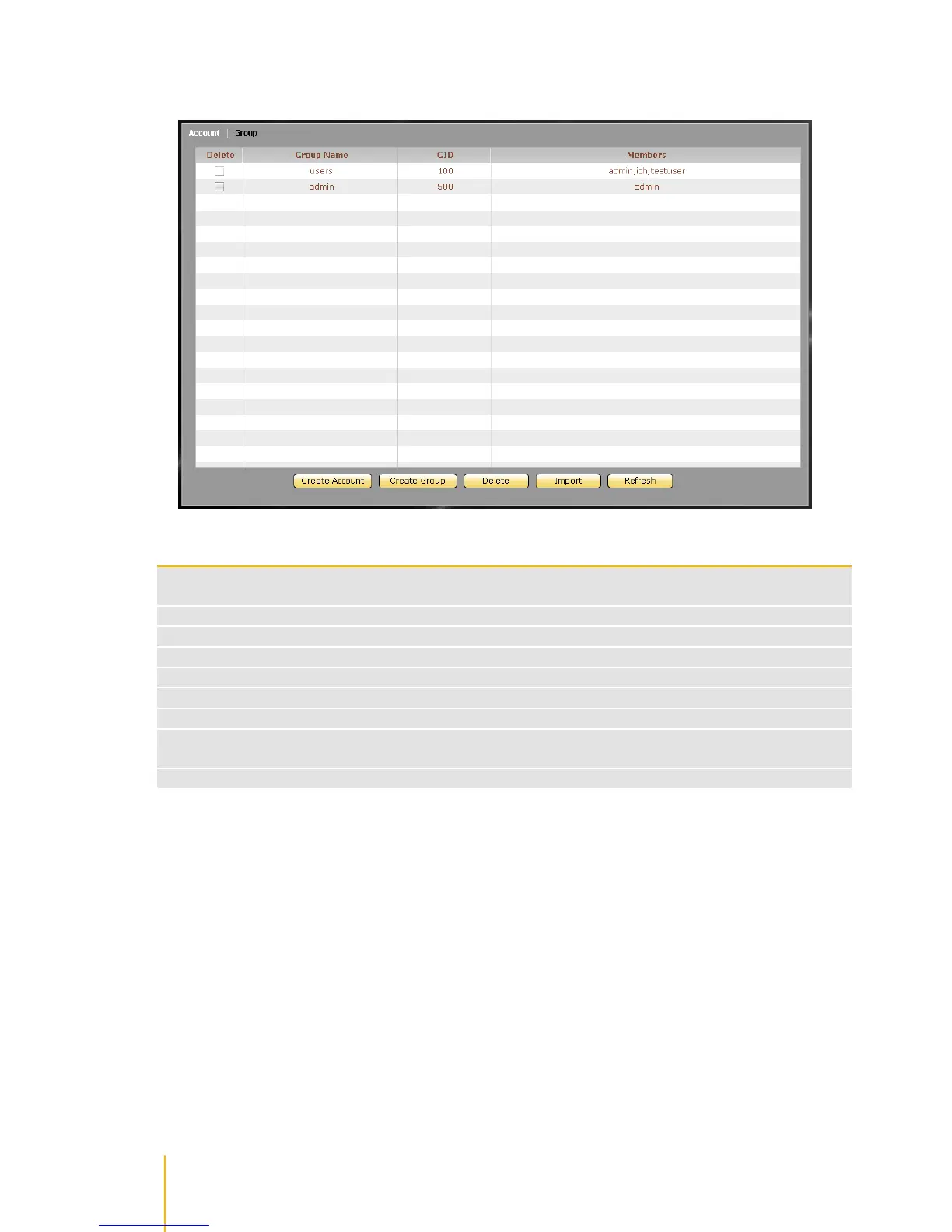 Use this button to delete the selected user account or group account