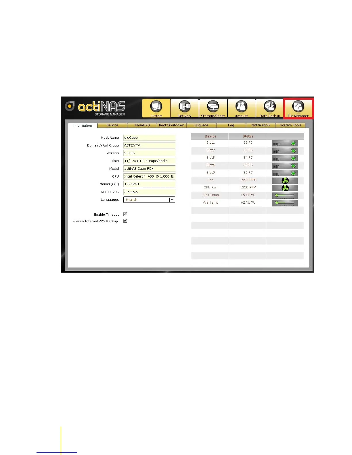 Actidata actiNAS cube RDX - Login to File Manager