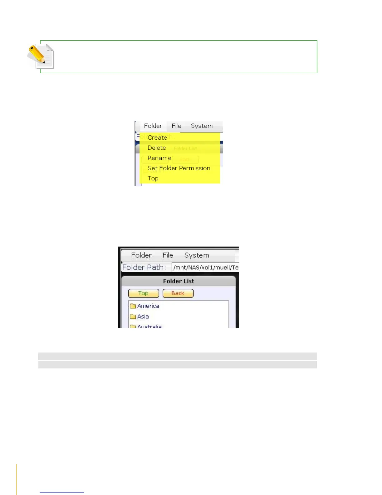 Use the Top option in the Folder menu to go up to the top most level of share folder list from the current