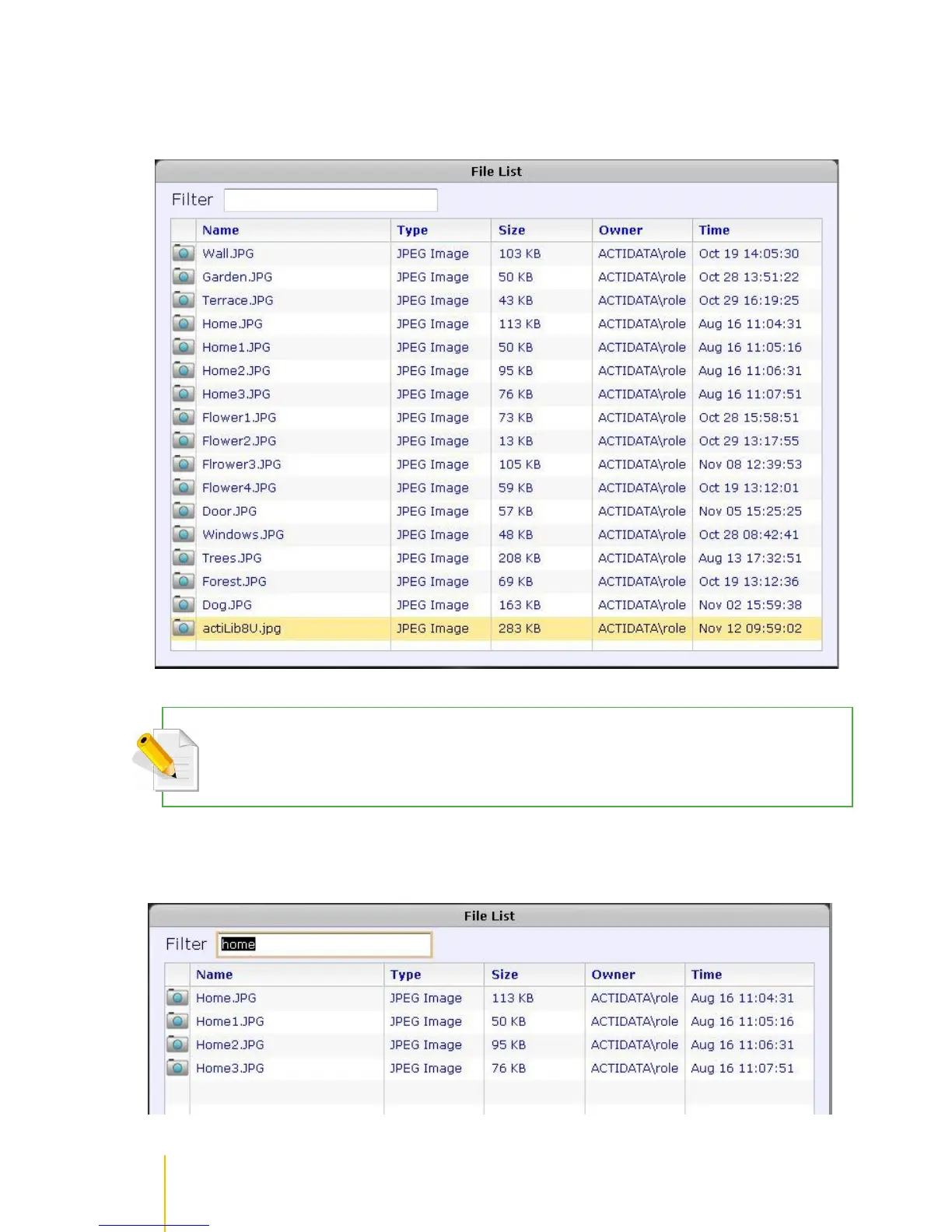 NOTE: Use the Filter function to display specific files. For example, if you want to display files with characters