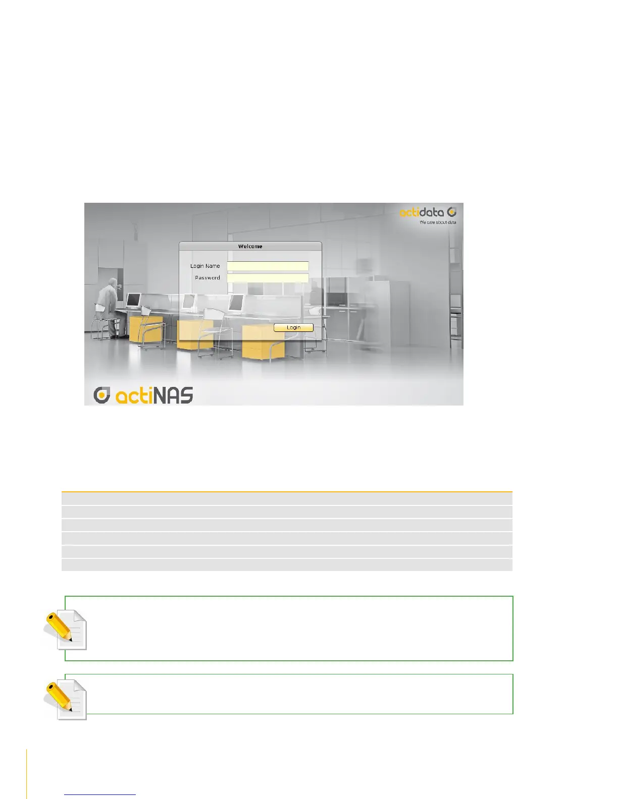 3. The actiNAS Login Page will be displayed.