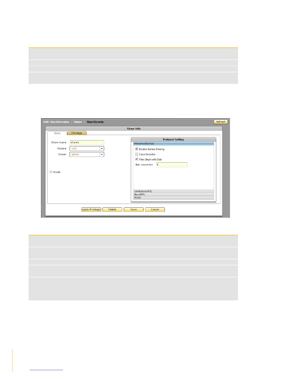 is displayed. If share will be accessed by UNIX/Linux clients, setup the necessary options.