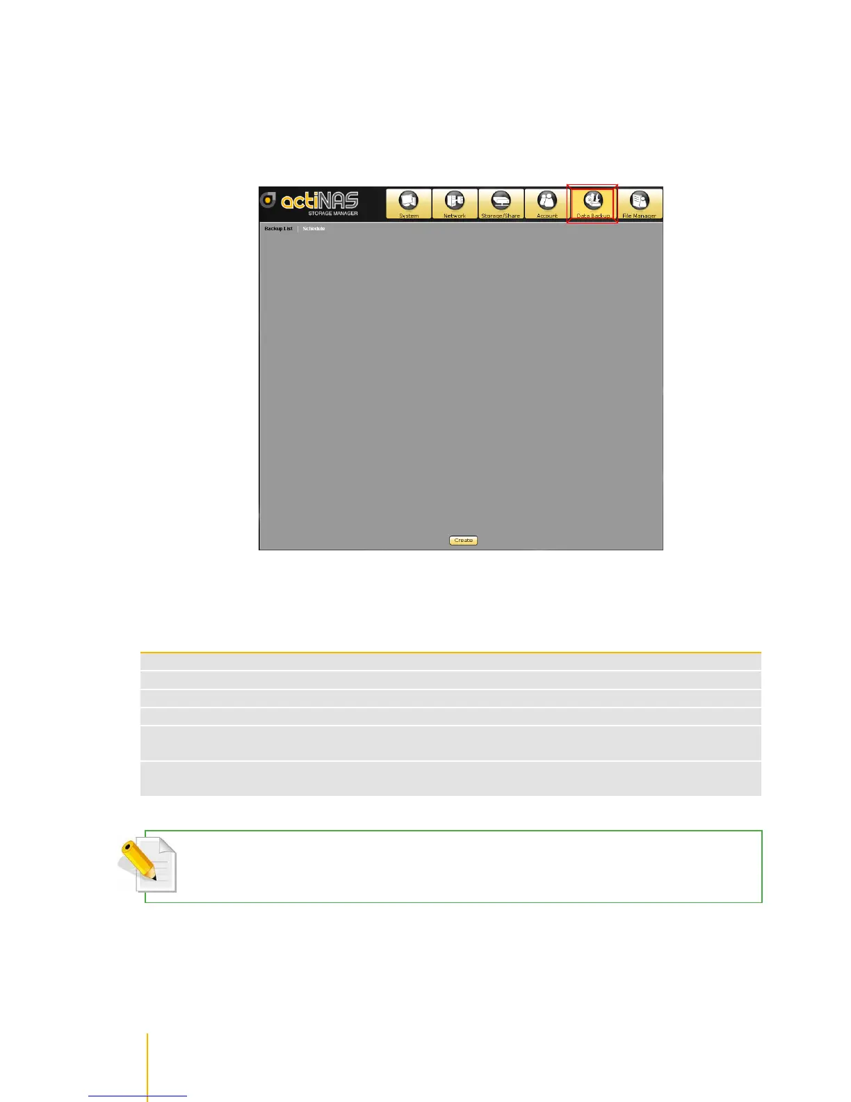 1. Select Data Backup. Click Create.