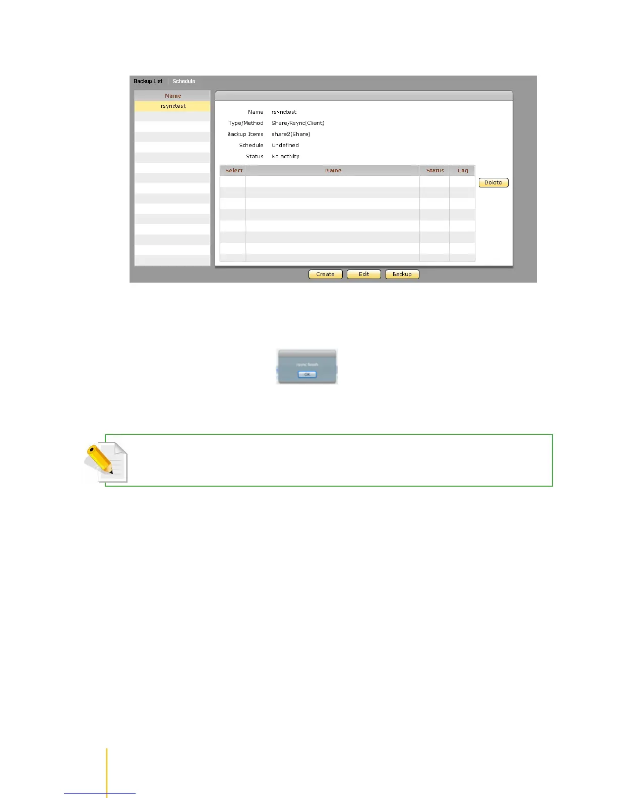 4. To execute the Rsync backup that was just created, select the backup name from the backup List,