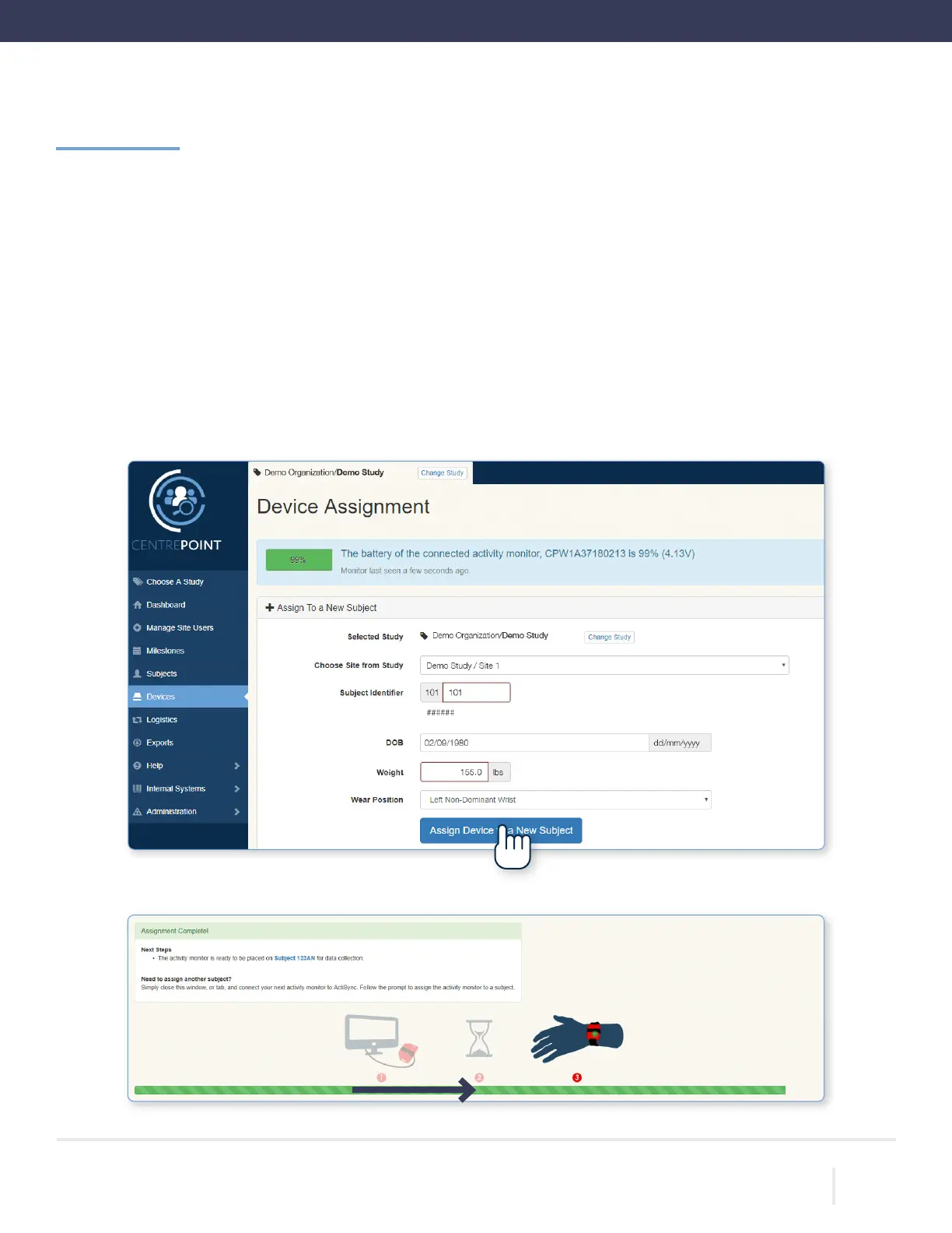 Select “Assign Device to a New Subject.” Wait for progress bar to indicate that assignment is complete.