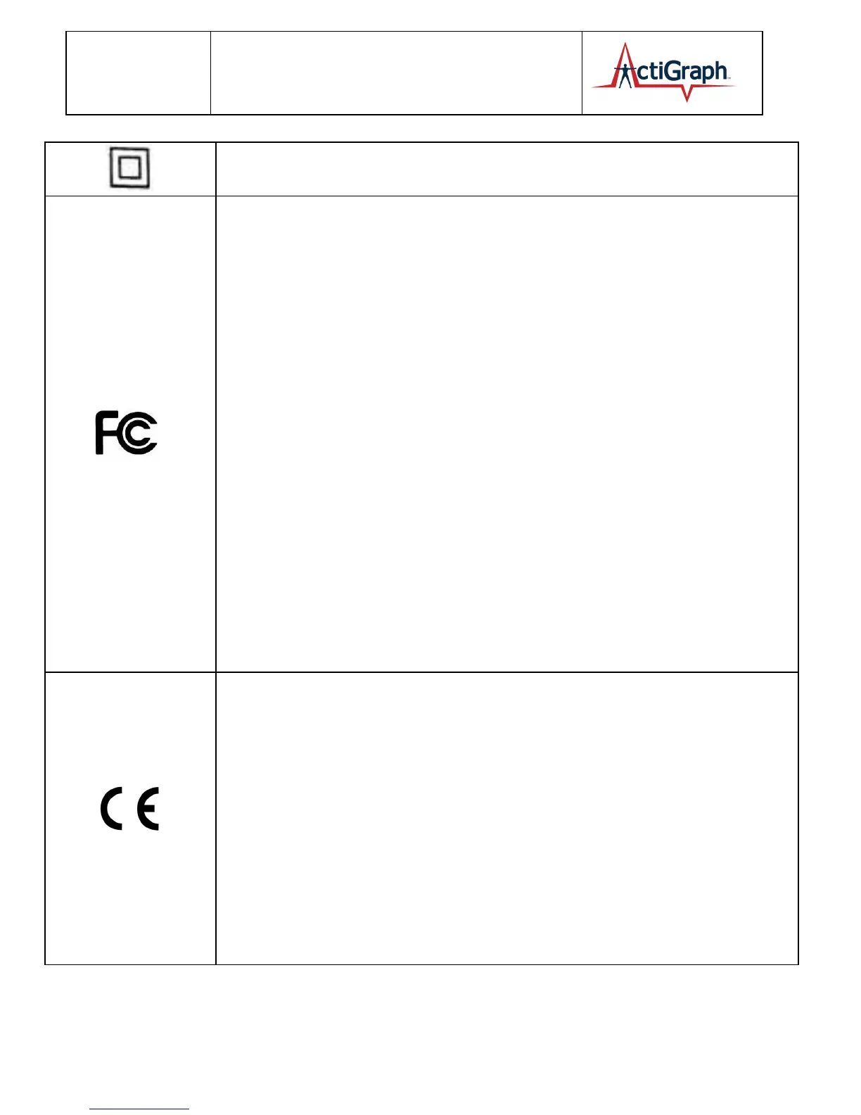 undesired operation. Changes or modifications not expressly approved by ActiGraph, LLC