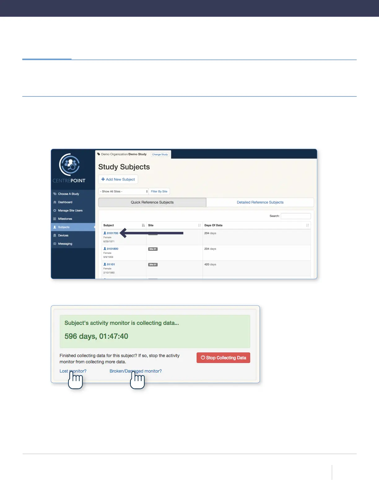 To disassociate an CPW01, select the “Subjects” tab from the left hand menu, and select the desired subject from
