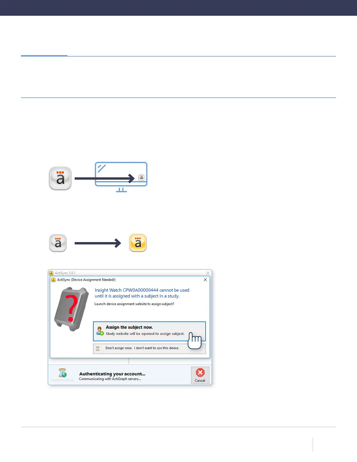 Once connected, the ActiSync icon will turn yellow and a dialog box will open.