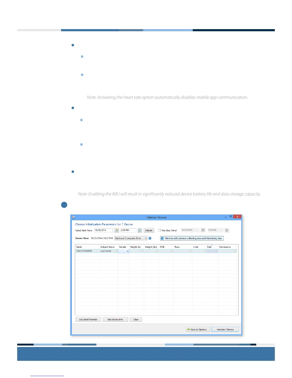 Note: Enabling the IMU will result in signicantly reduced device battery life and data storage capacity.
