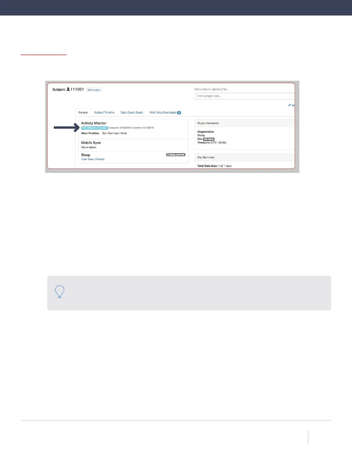 A “Data Collection Complete” tag will appear in the general tab under the “Subject Details”