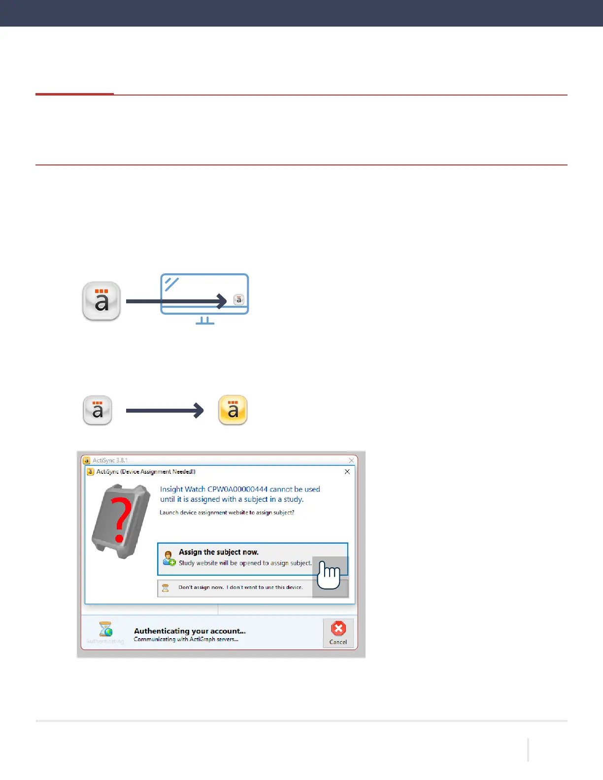 connected, the ActiSync icon will turn yellow and a dialog box will open.