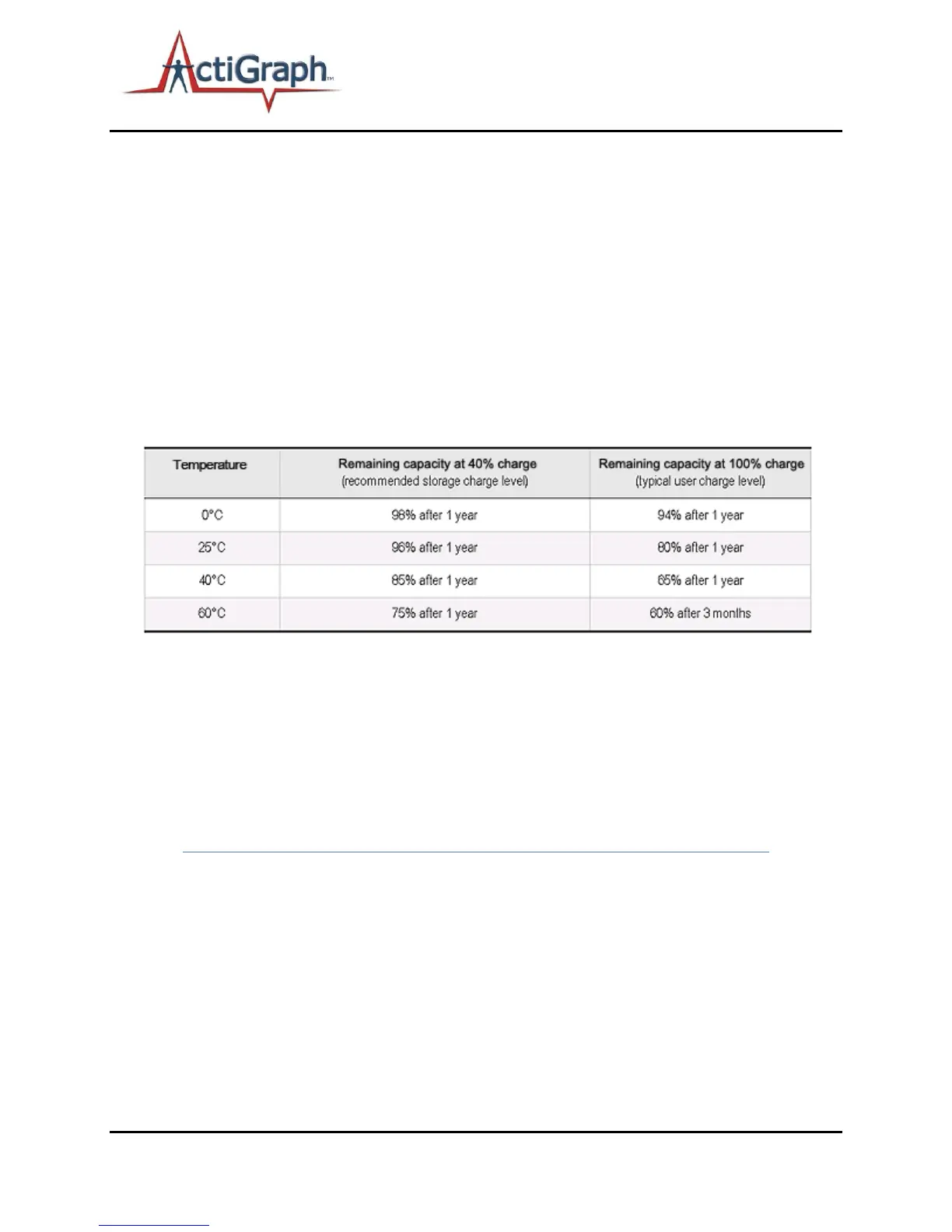 All ActiGraph devices use a lithium ion rechargeable battery that has a maximum voltage of