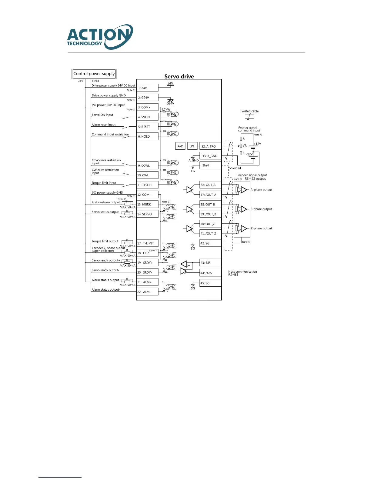 Note 6) Connect the signal ground on the host control device of output signal of the encoder. The connection of signal ground