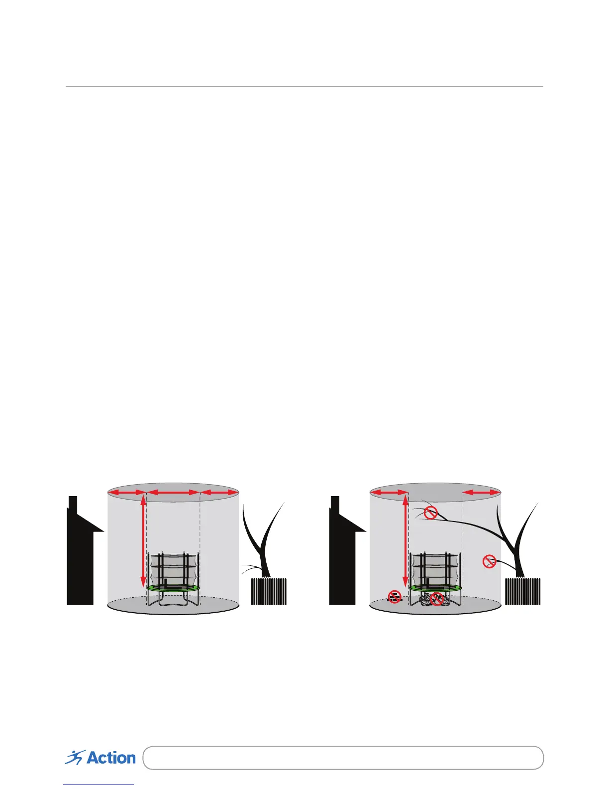 Do not locate the trampoline on top of other objects or store anything underneath the