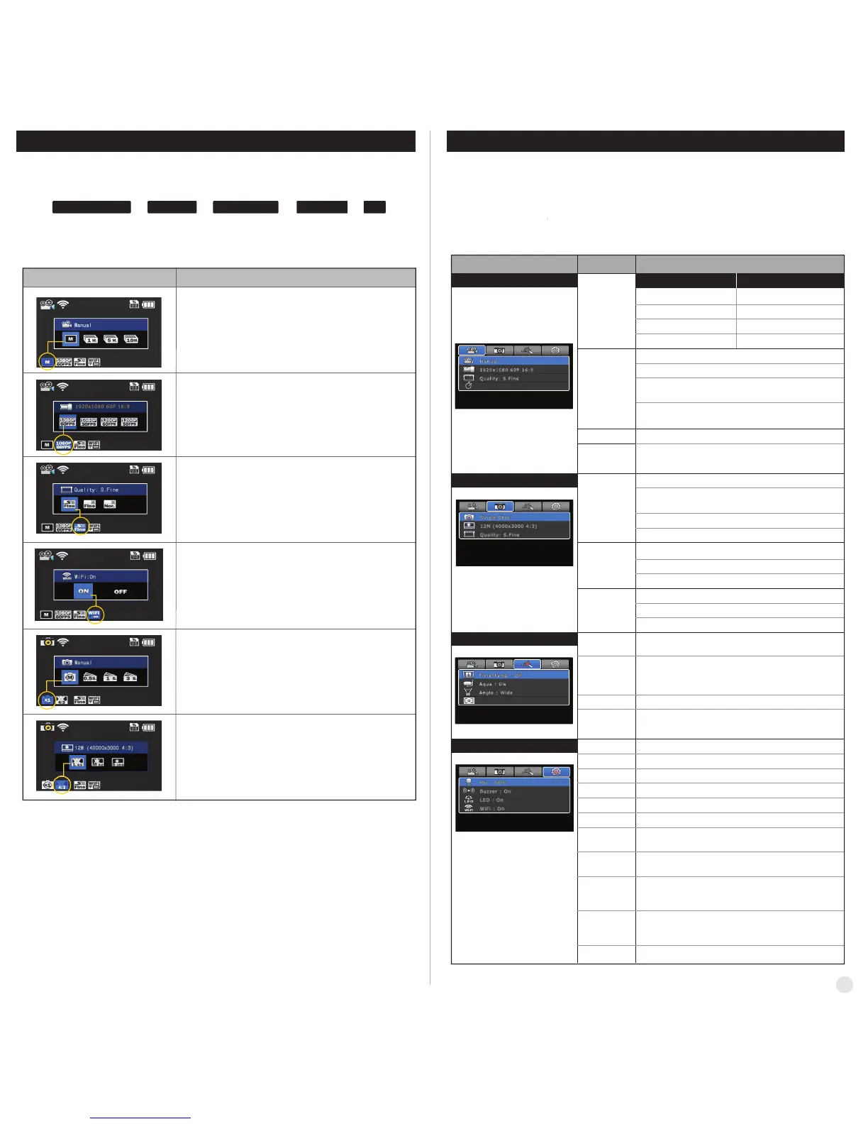 ( recording option → resolution → image quality → wifi on/off → exit ) in turn.