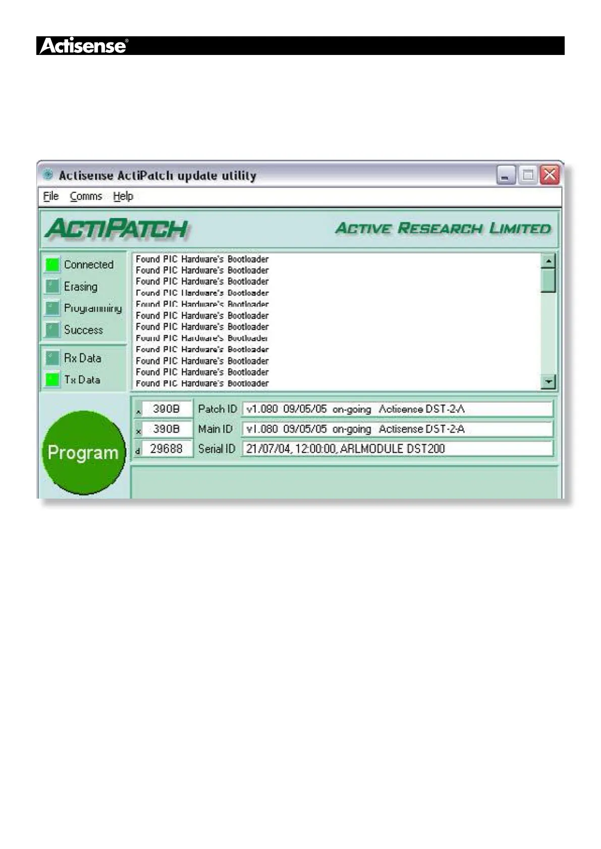 The Actisense DST-2 hardware can be easily and quickly updated using the Actisense ActiPatch. The main window