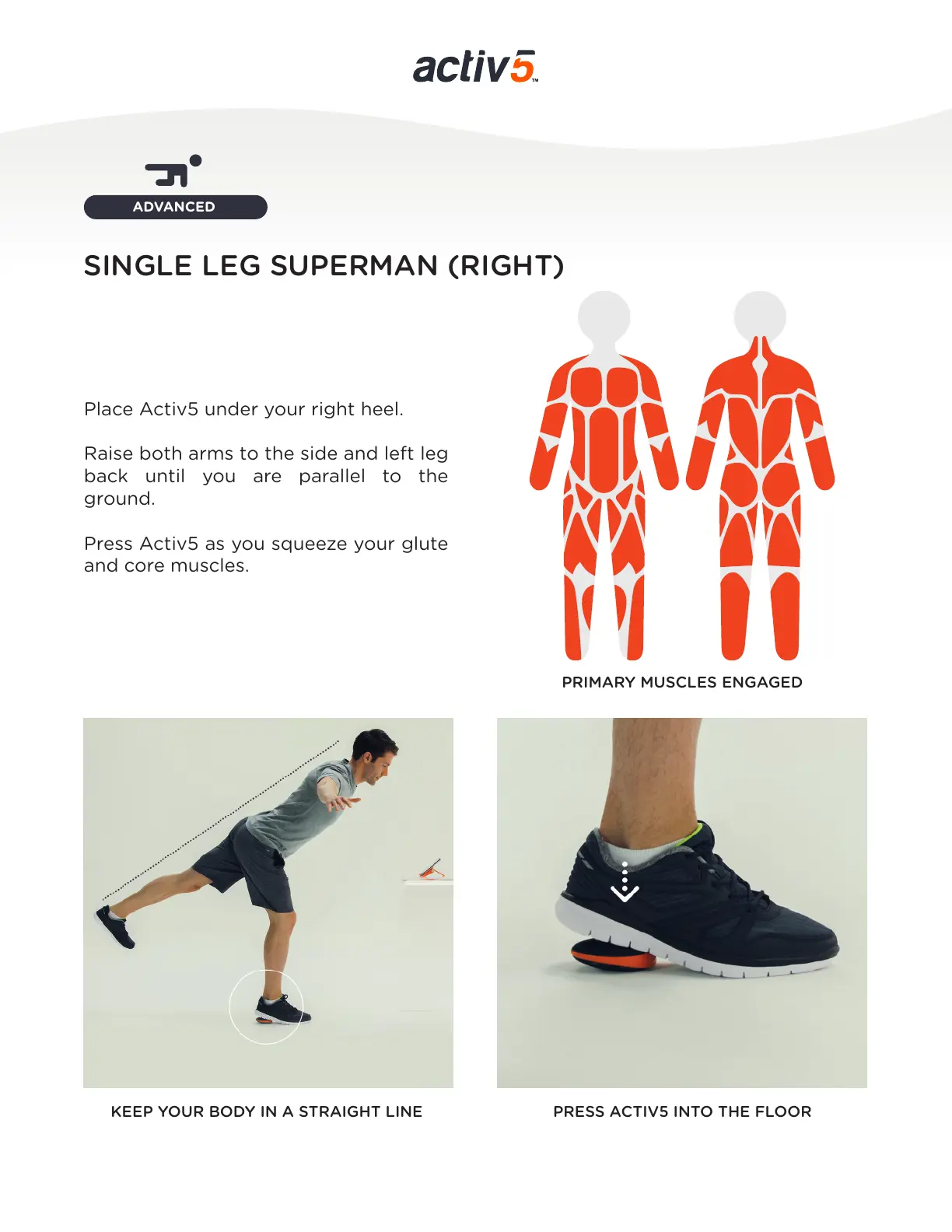 KEEP YOUR BODY IN A STRAIGHT LINE PRESS ACTIV5 INTO THE FLOOR