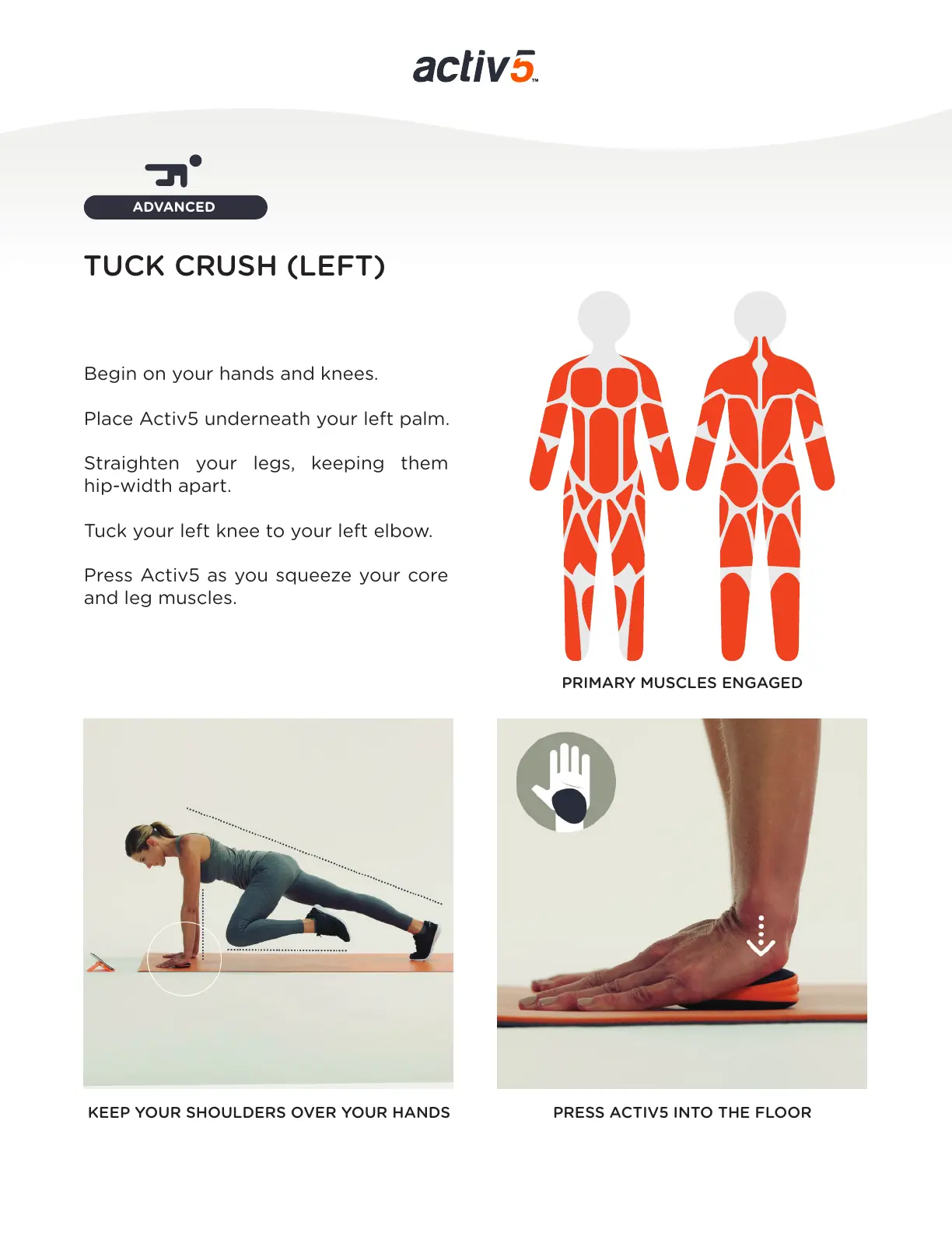 KEEP YOUR SHOULDERS OVER YOUR HANDS PRESS ACTIV5 INTO THE FLOOR