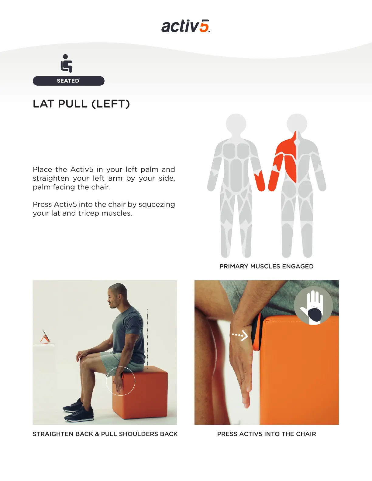 STRAIGHTEN BACK & PULL SHOULDERS BACK PRESS ACTIV5 INTO THE CHAIR