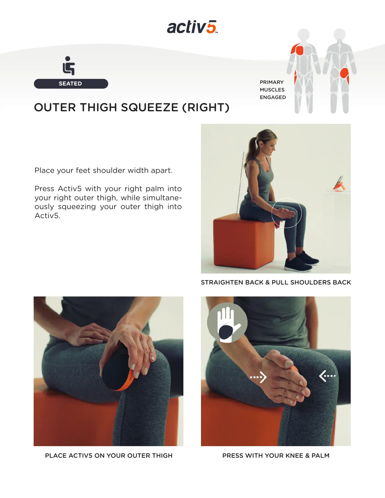 PLACE ACTIV5 ON YOUR OUTER THIGH PRESS WITH YOUR KNEE & PALM