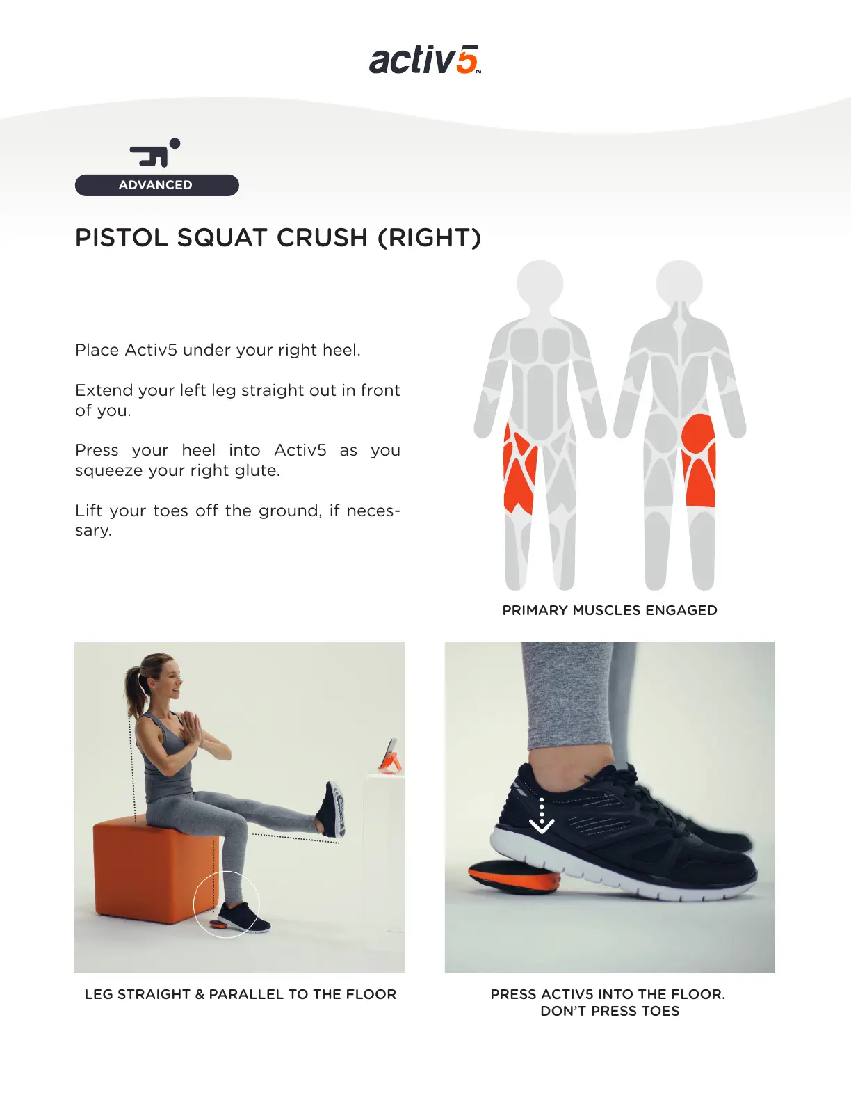 LEG STRAIGHT & PARALLEL TO THE FLOOR PRESS ACTIV5 INTO THE FLOOR.