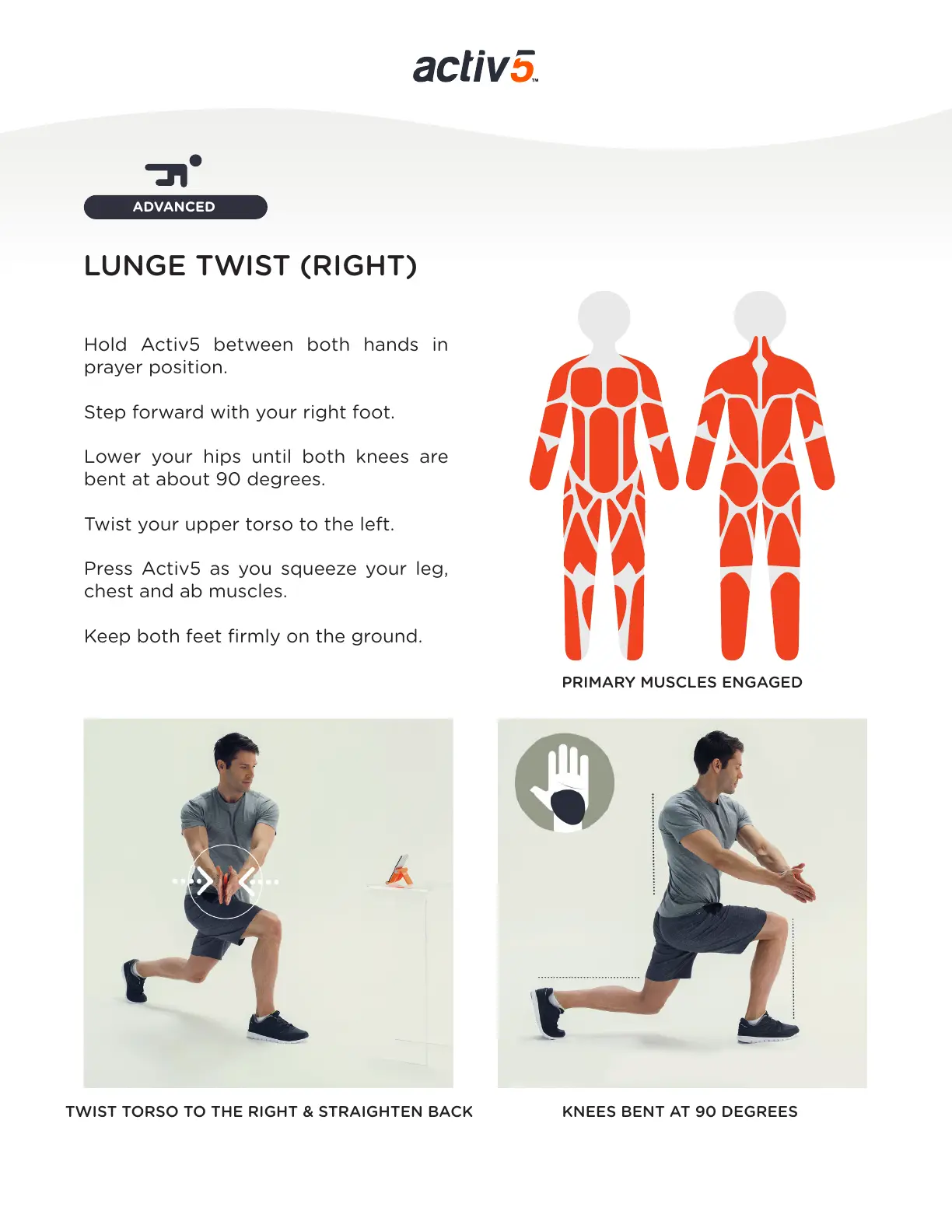 TWIST TORSO TO THE RIGHT & STRAIGHTEN BACK KNEES BENT AT 90 DEGREES