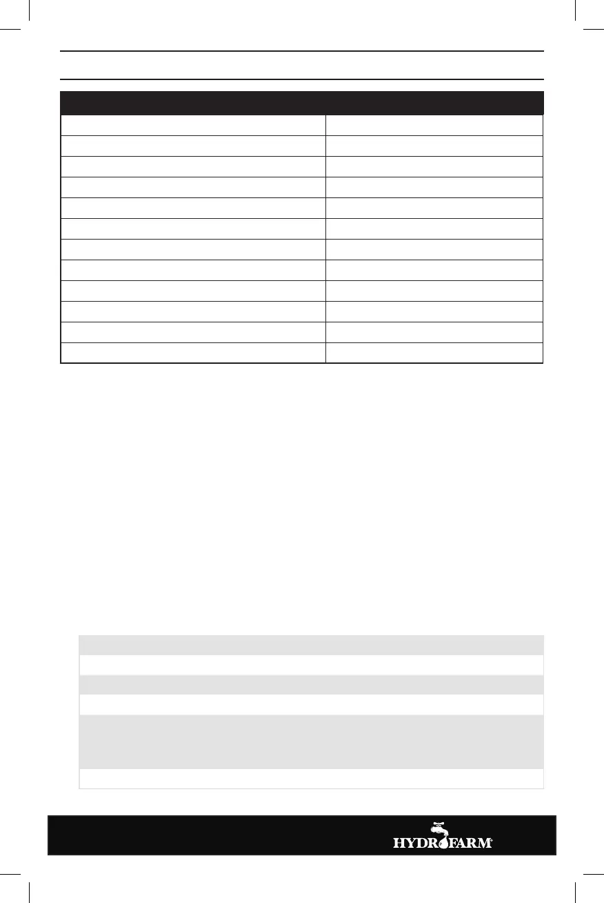 Recommended pump: Hydrofarm AAPW1000, AAPC1010 and AAPC1020 or AAPC2010