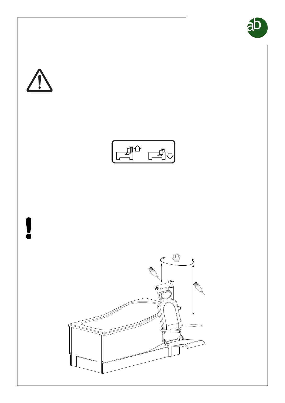 • To lift the seat in/out of the bath (A) press and hold the seat up button. The