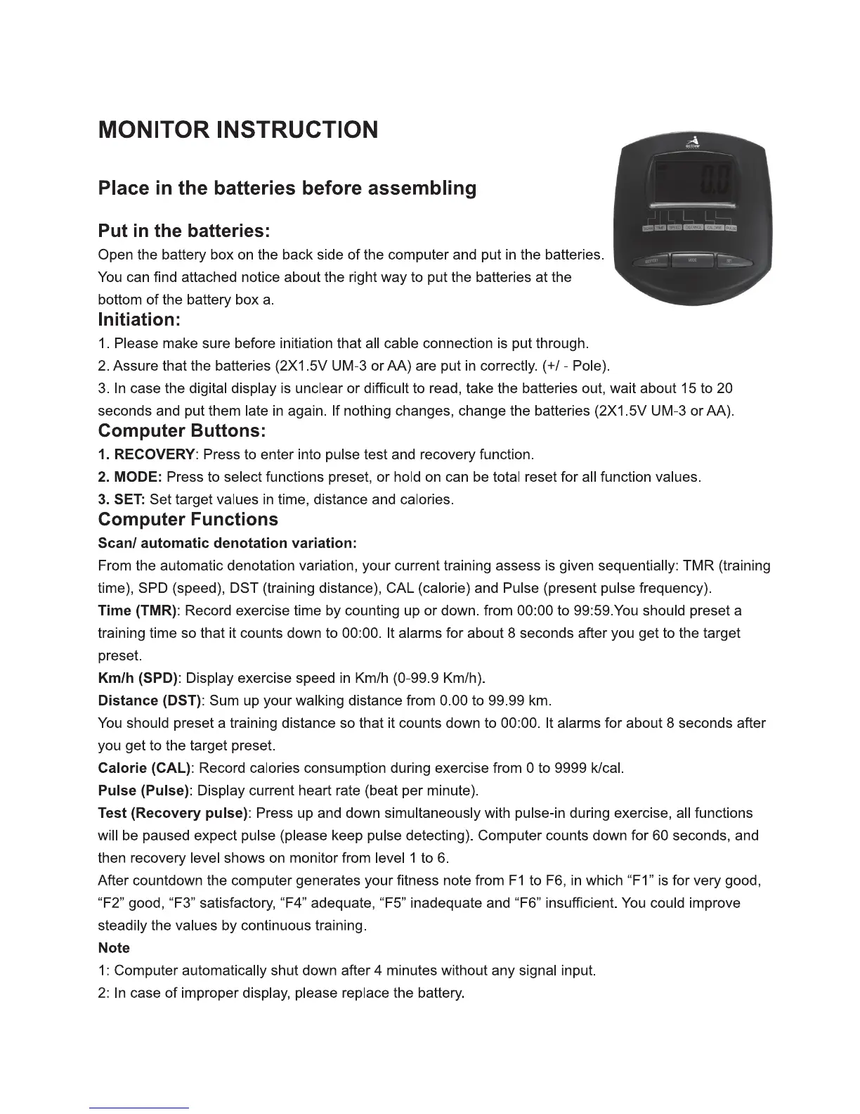 Active Intent GBMT6112 - Monitor Instruction; Battery Installation and Initialization; Understanding Monitor Functions and Buttons