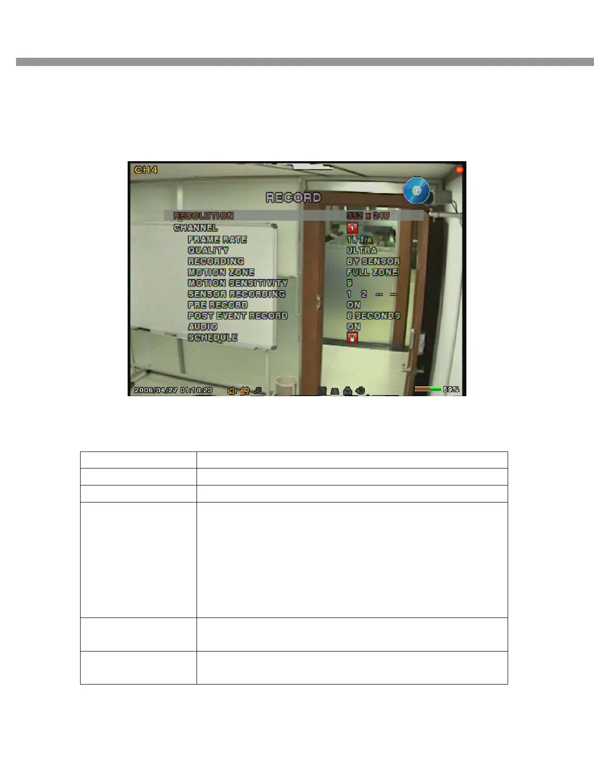 Table 3.3.1. Menu items in Recording mode setup