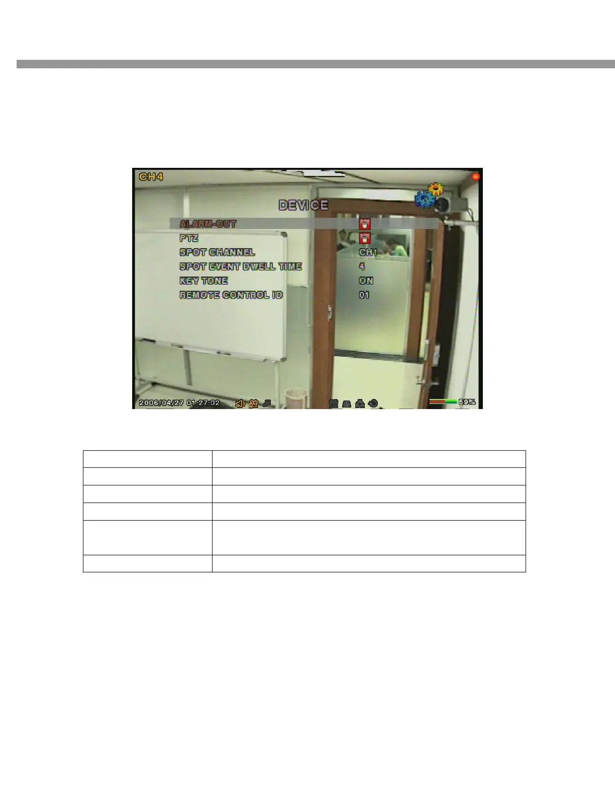 Table 3.4.1. Menu items in Device Setup screen