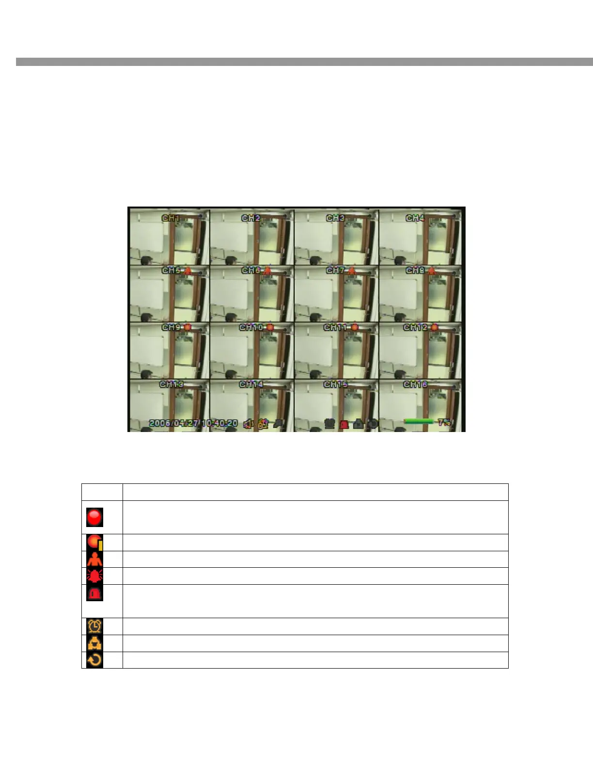 setup. Various indicators showing the status of the DVR are shown as OSD symbols. Refer to