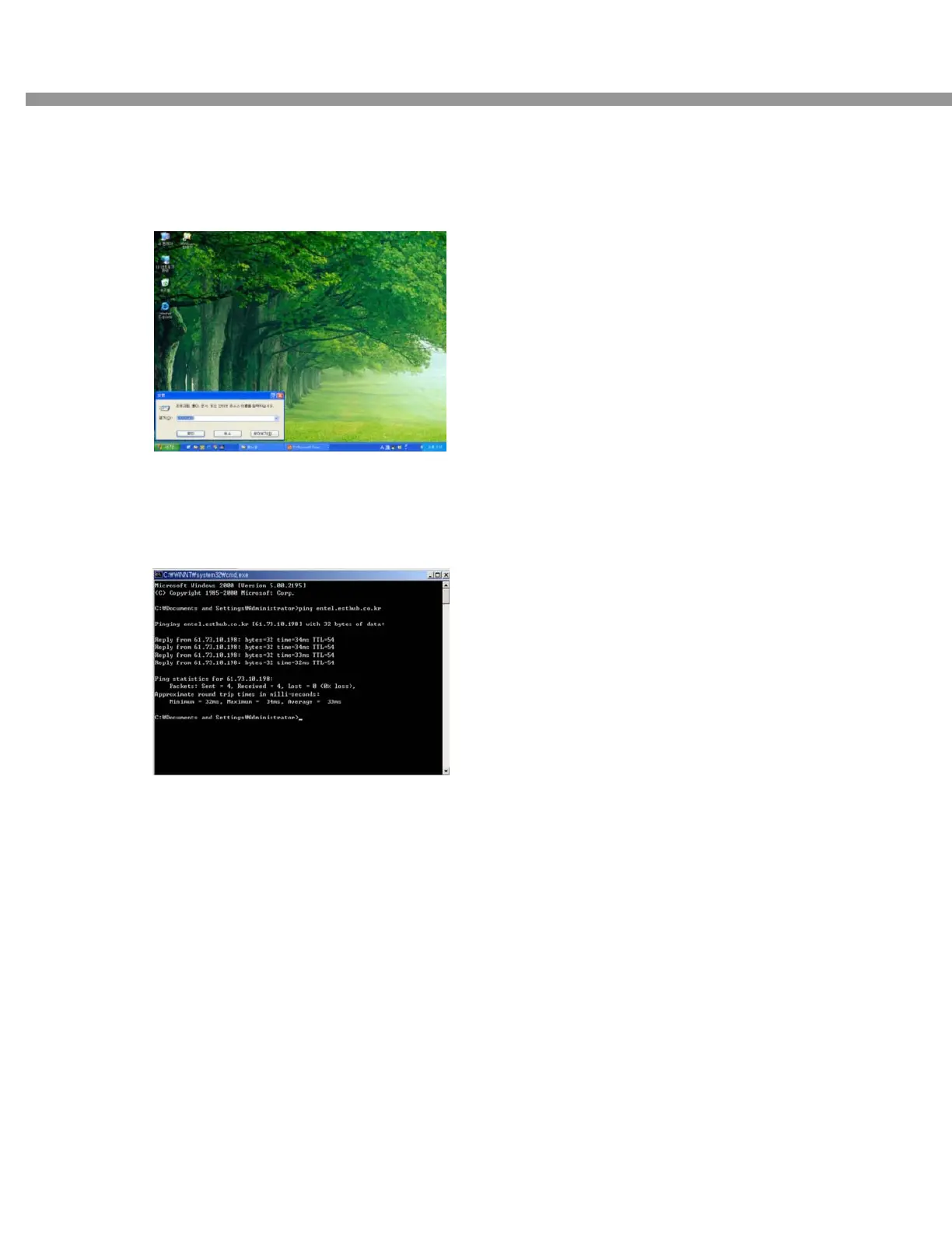 Ping entel.esthub.co.kr [Enter]