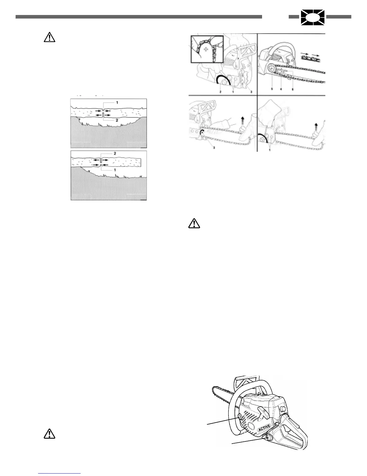 cut in the side under traction to prevent the chain saw from