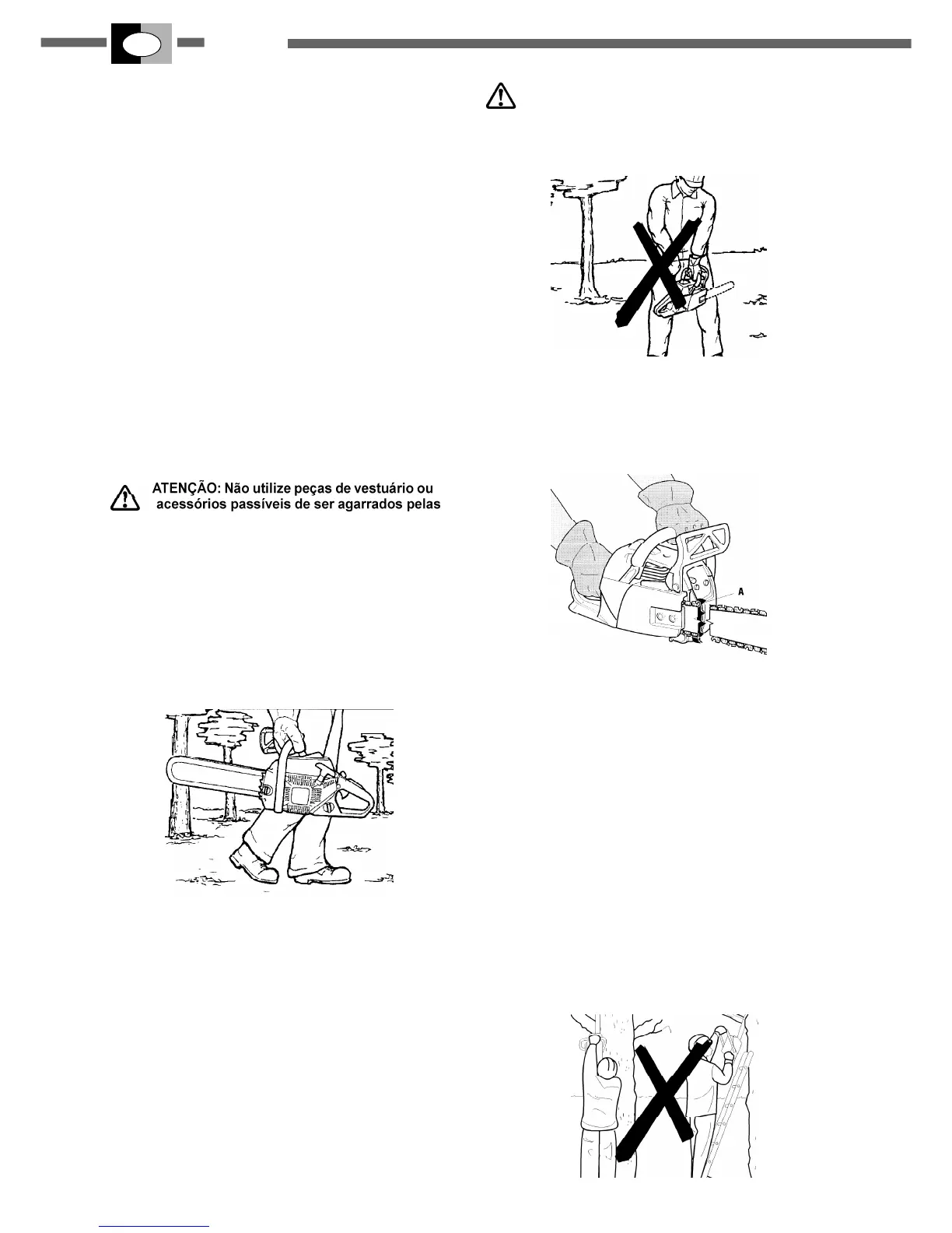 Durante o trabalho deve agarrar firmemente a motosserra