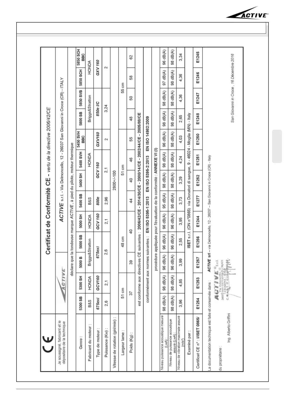 Active 5400 SVH - Certificat de Conformite