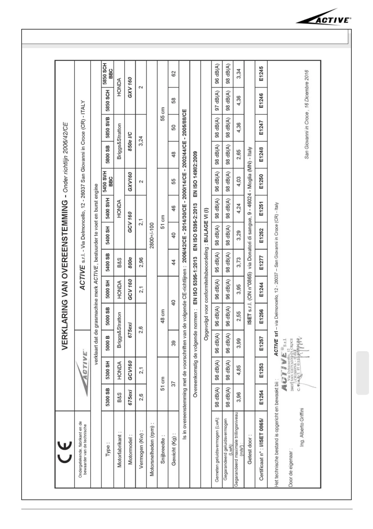 Active 5400 SVH - Verklaring Van Overeenstemming