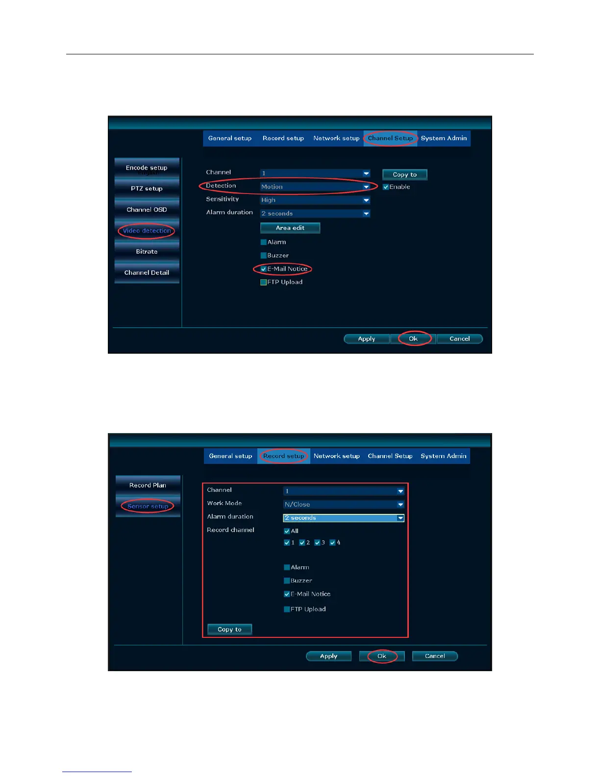 After E-Mail setup and test,you also need to set up in the alarm and the video detection.