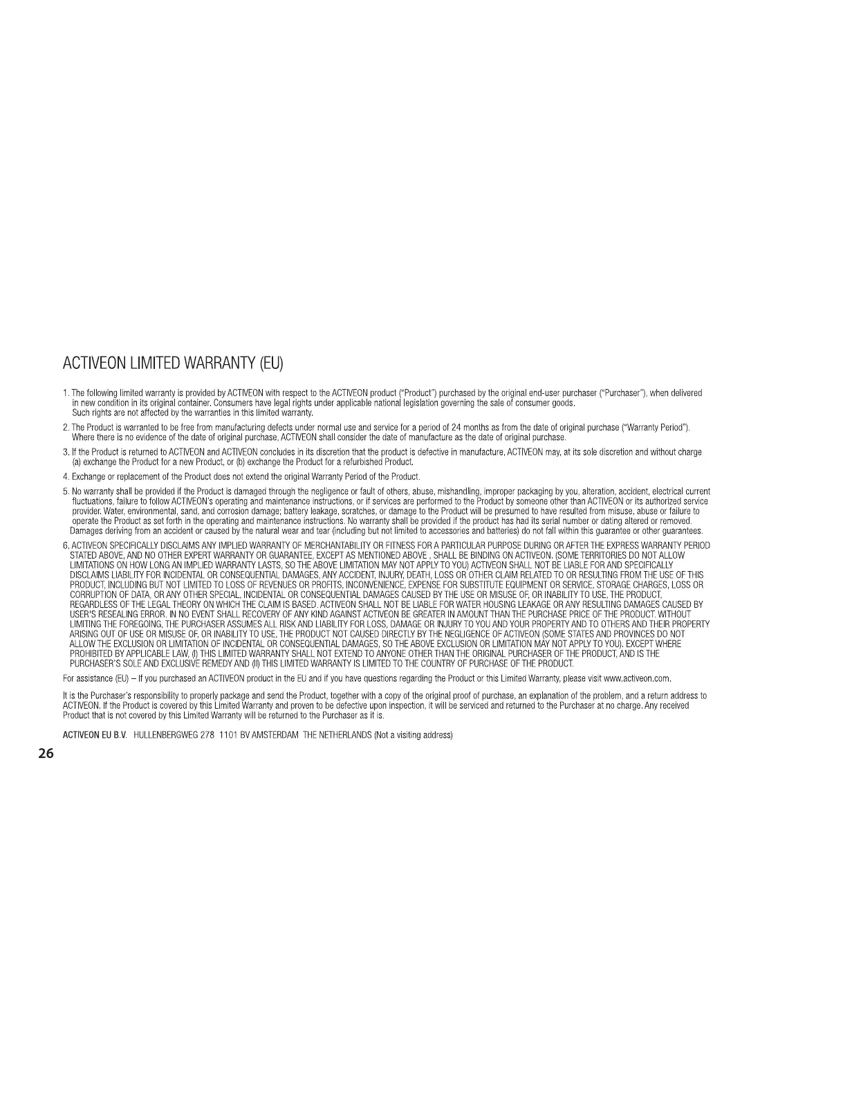 Activeon CX - EU Limited Warranty