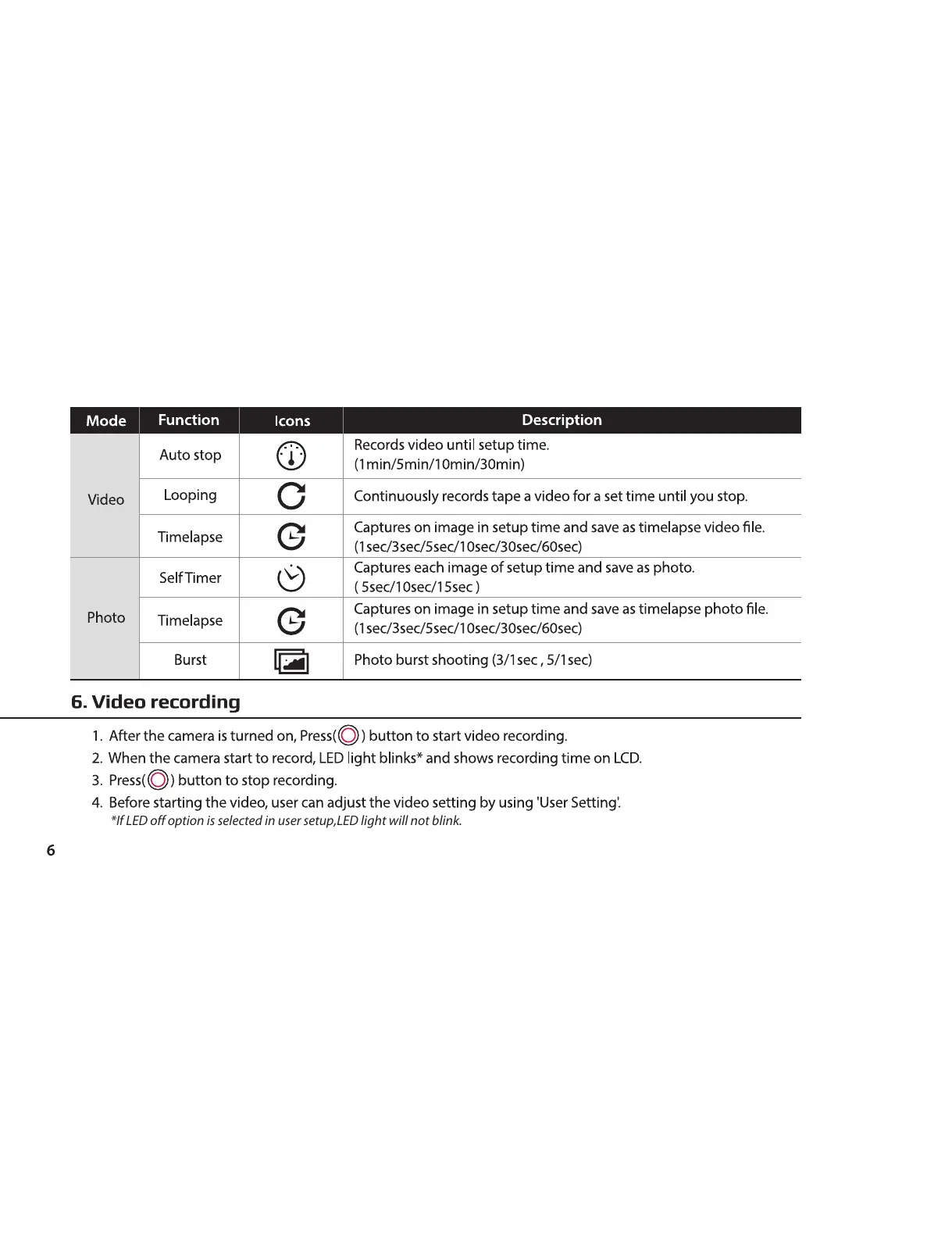 *If LED off option is selected in user setup,LED light will not blink.
