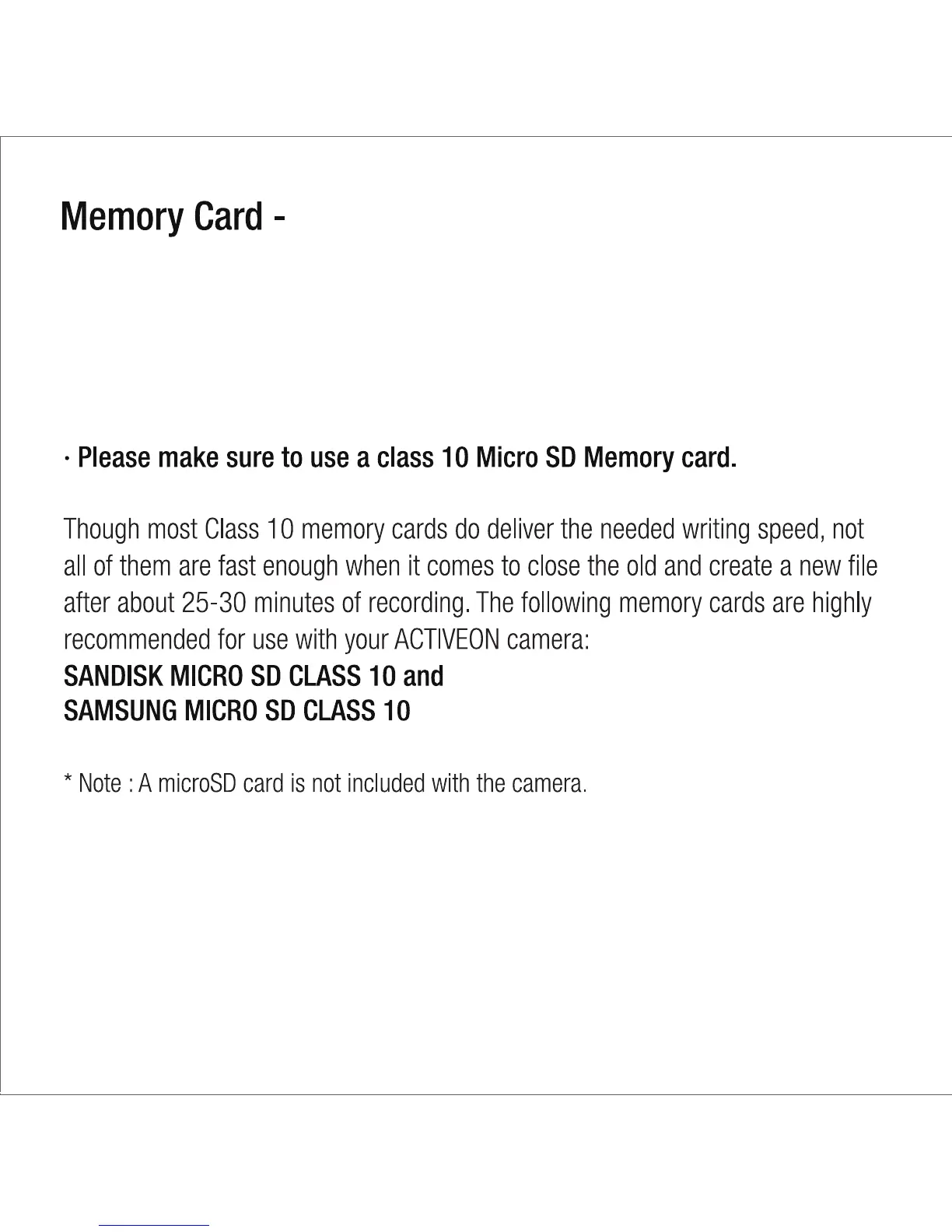 Activeon DX - Memory Card; Micro SD Card Requirements
