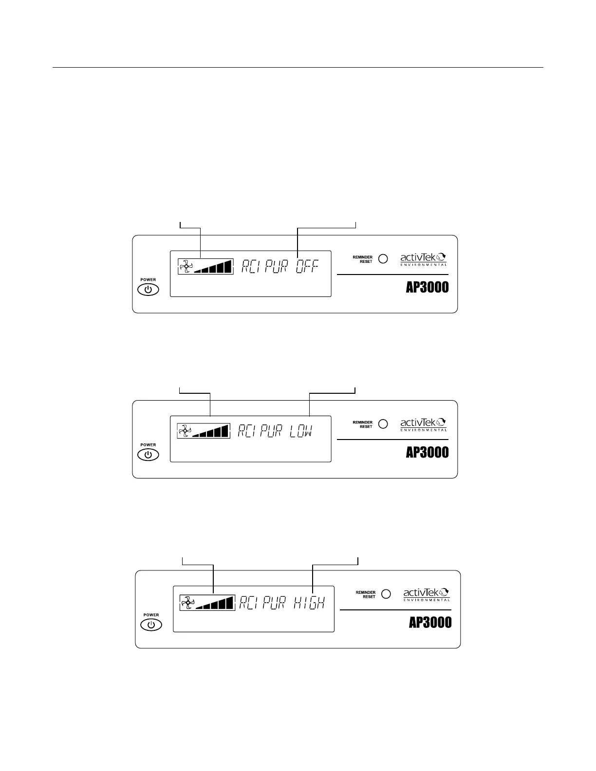 RCI PUR OFF : Le ventilateur et l’ionisation sont activés. La Cellule ActivePure® est désactivée.