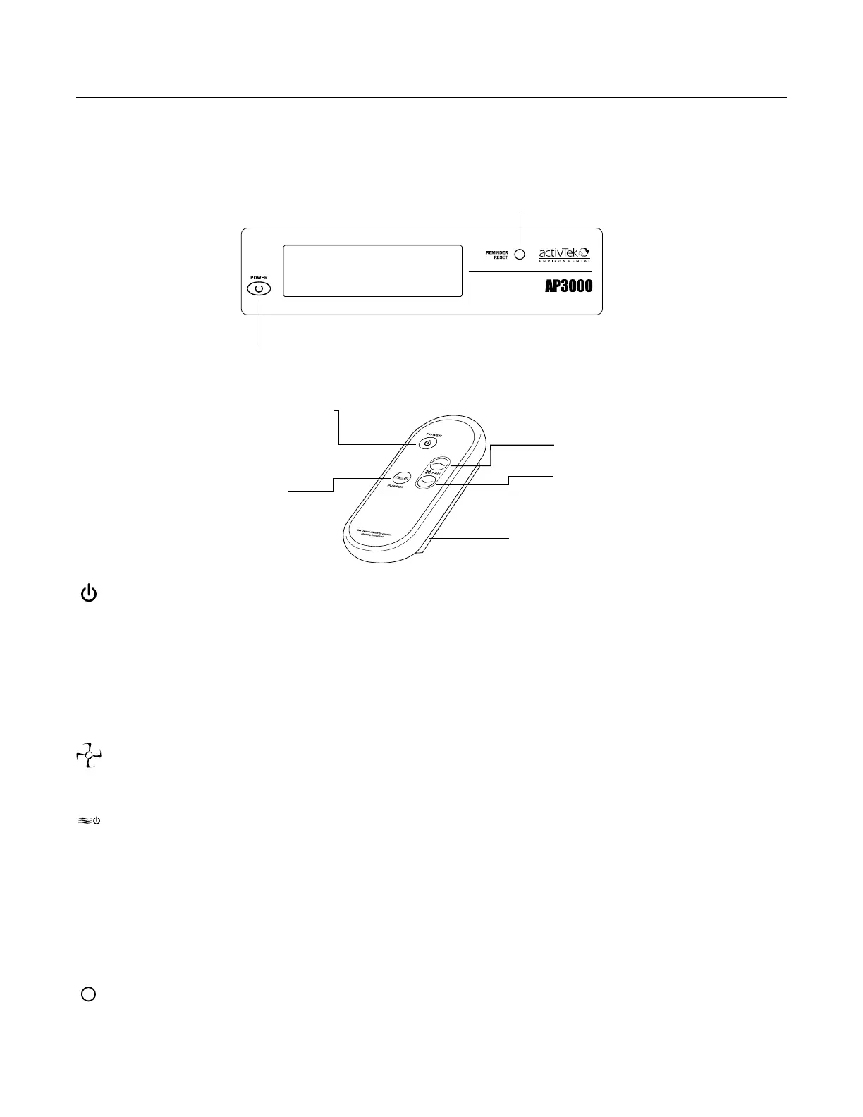 L’AP3000 II peut être activé et désactivé à l’aide de la télécommande incluse ou du panneau de contrôle situé