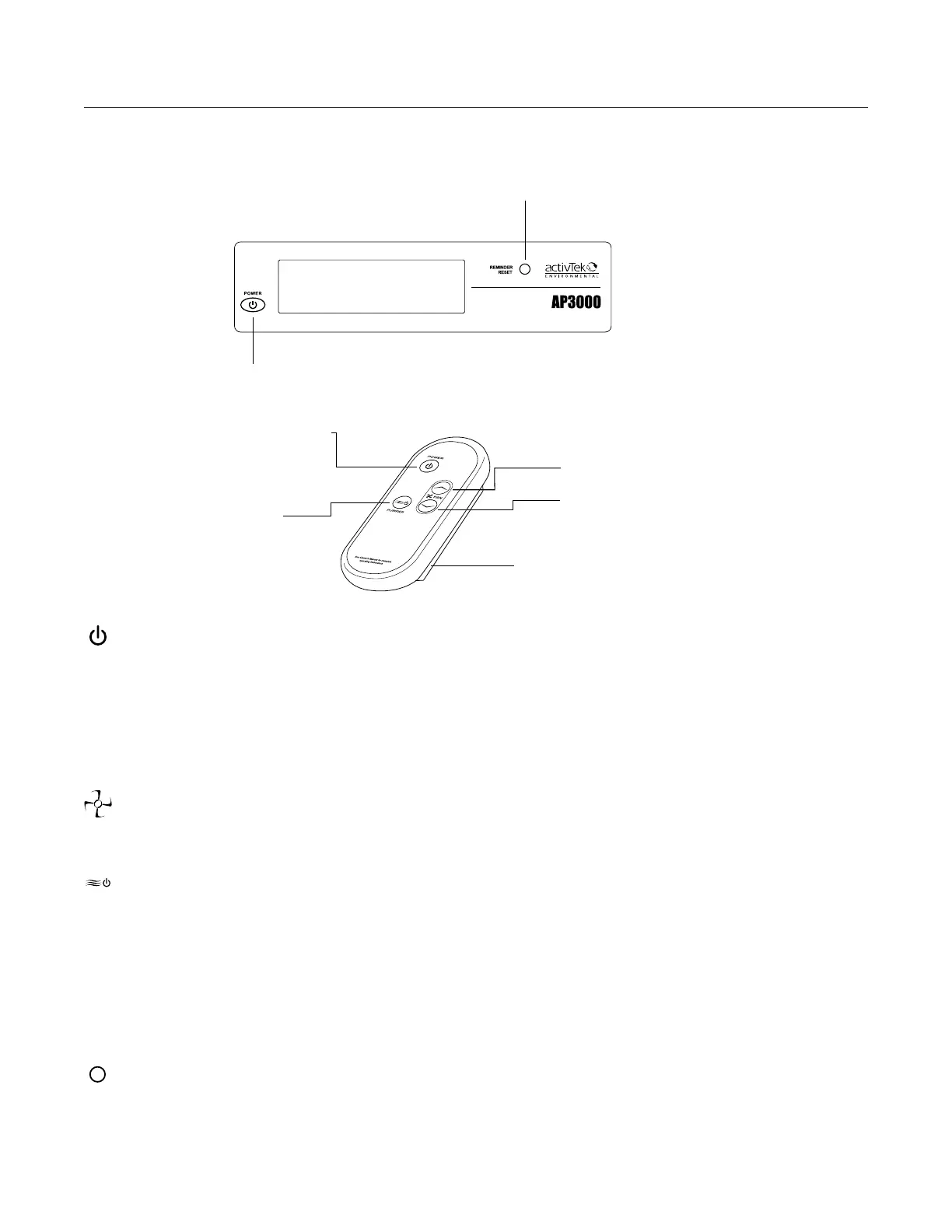 AP3000 II can be turned on or off using either the included remote or the control panel on the front of the unit