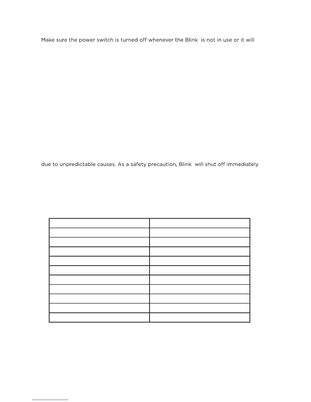 near flammable materials. Unplug the charger and disconnect from Blink® when not in