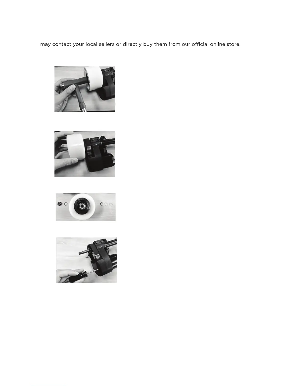 (1) Loosen the axle nut using the provided skateboard tool
