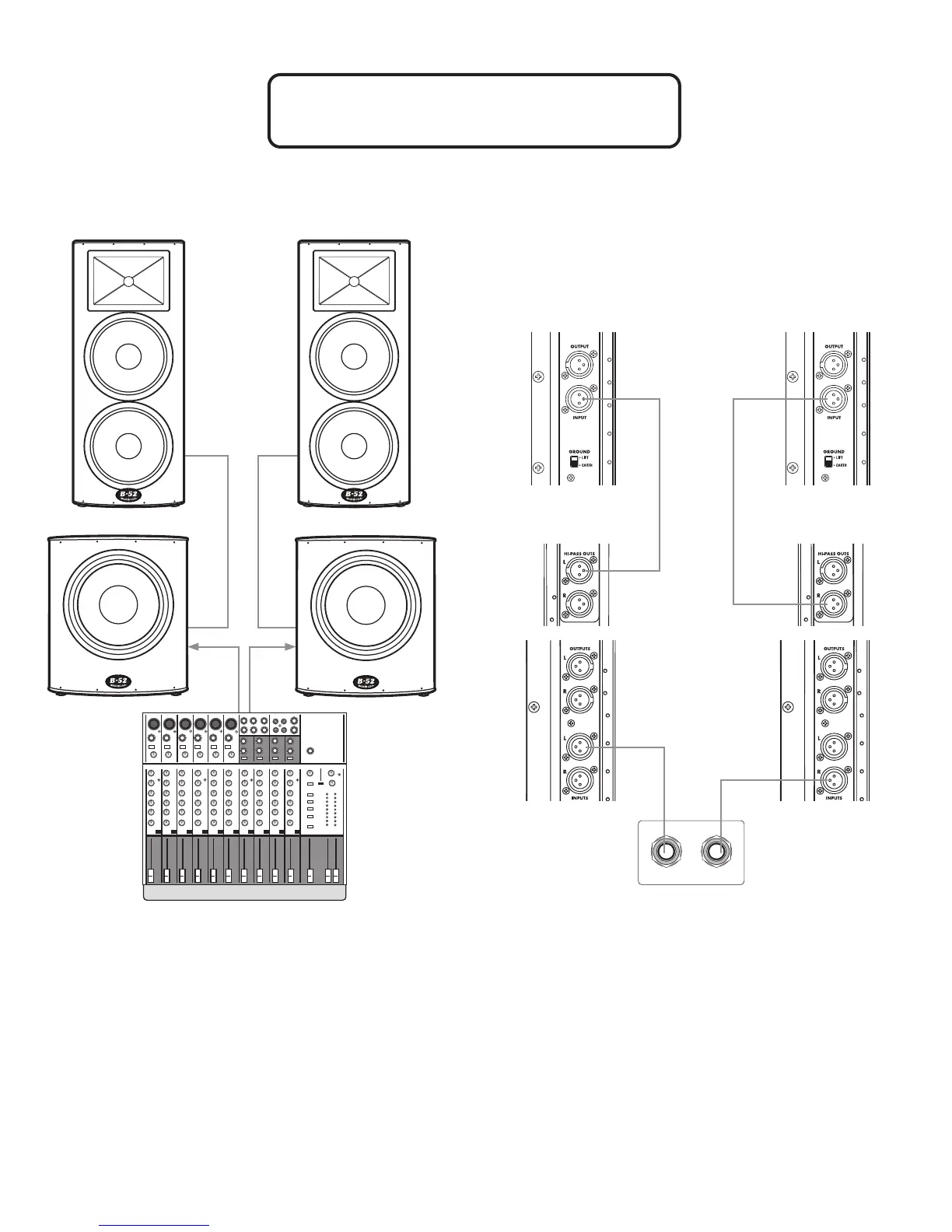 • Power ON Mixer, then Power ON subwoofers, then