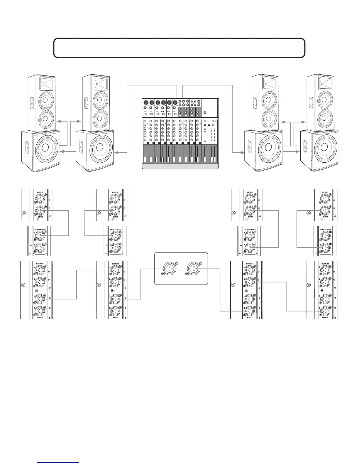 • Power ON Mixer, then Power ON Subwoofers, then Power ON