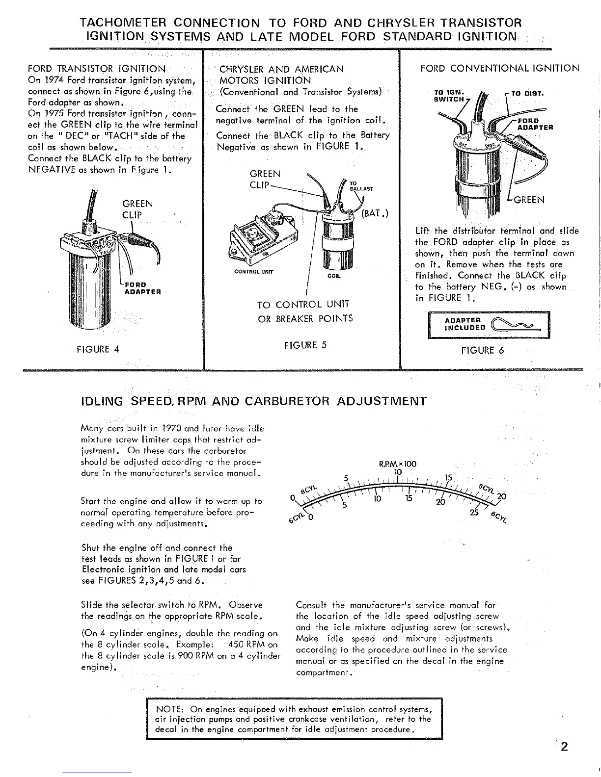 Actron 612 - Connections for Ford & Chrysler Ignition Systems; Ford Transistor Ignition; Chrysler & American Motors Ignition; Ford Conventional Ignition